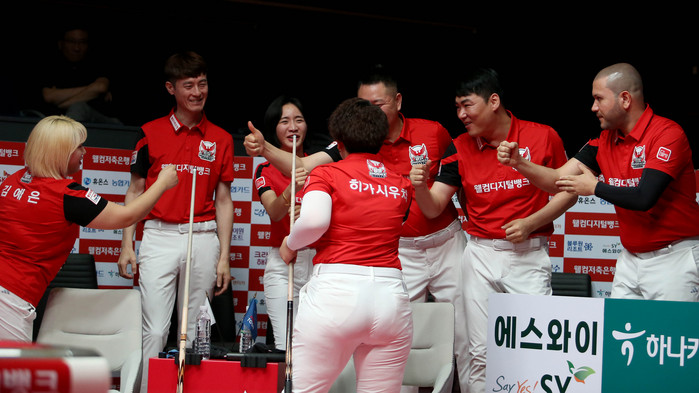 3세트는 홀로 경기에 나선 사파타가 초클루를 꺾고 승리를 추가하며 세트스코어 3:0으로 격차를 벌렸다. 이후 하나카드가 4세트서 응우옌 꾸억 응우옌(베트남)-김가영이 강민구-스롱 피아비를 9:4(9이닝), 4세트서 응우옌이 찬 차팍(튀르키예)을 11:7(8이닝)로 제압하며 두 세트를 만회했으나 6세트서 스롱이 김가영을 13이닝 접전 끝에 9:5로 제압하며 경기를 마무리, 블루원이 세트스코어 4:2로 승리했다.