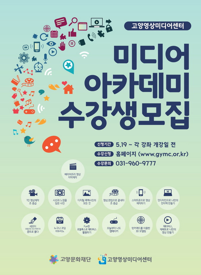 [부자동네타임즈 김인수기자] 고양시 산하 고양문화재단 고양영상미디어센터에서 여름학기(6월~9월)를 맞아 대면 및 비대면 교육, 여름특강 등 분야별 14개 강좌 수강생을 모집한다.