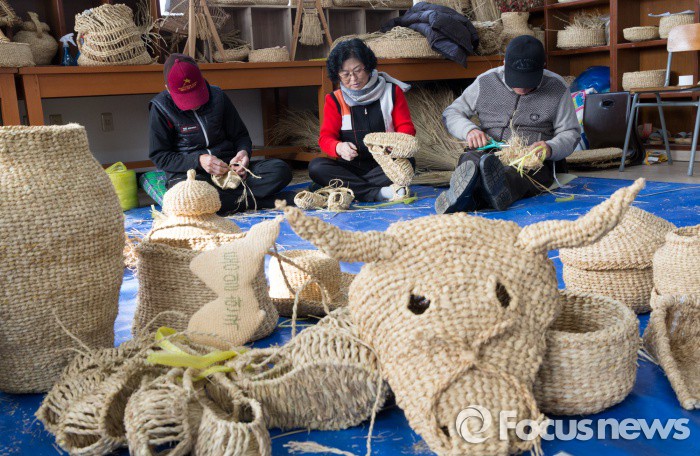 (세종=포커스뉴스) 30일 오후 세종시 전동면 짚풀공예사업단에서 마을 주민들이 겨울 농한기를 맞아 짚풀공예 제품을 만들고 있다. 짚풀공예는 농사를 짓고 나서 얻은 부산물인 볏짚과 보리 짚 등을 이용해 짚신, 삼태기, 망태 등 생활용품이나 다양한 조형제품을 만들어 판매하는 것으로 농민들의 농한기 대표적인 부수입원이다.