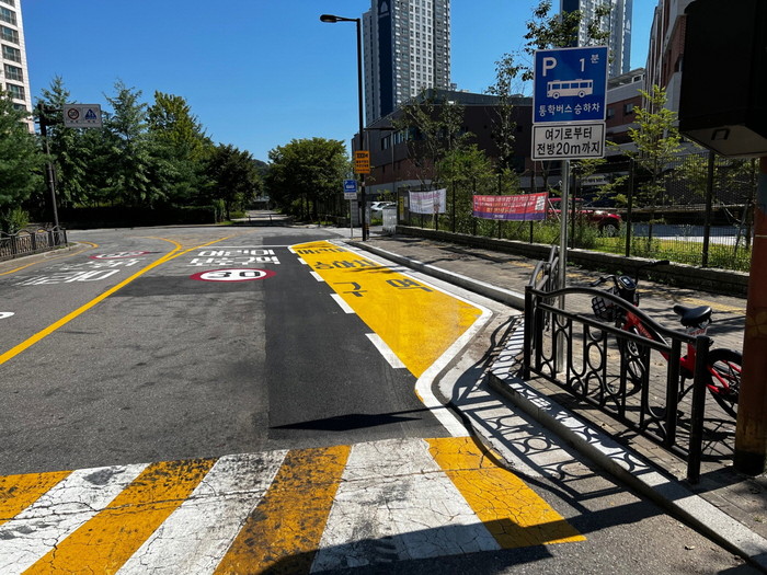 [사진설명] 신원초 앞에 조성된 어린이승하차구역(Drop-Zone)
