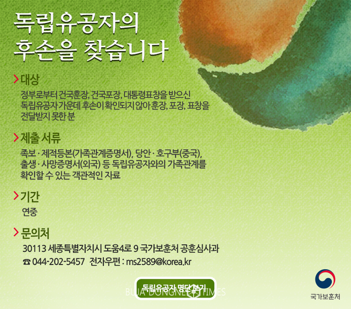 전북서부보훈지청, "독립유공자의 후손을 찾습니다.”