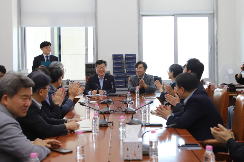 안호영 의원은 인사말을 통해 “ 오늘 정책협약은 산업현장 안전을 위한 제도적 기반을 다지는 출발점 ” 이라며 “ 협회가 제안한 법령 개선과 제도 정비 과제를 정책에 반영할 수 있도록 최선을 다하겠다 ” 고 밝혔다 .