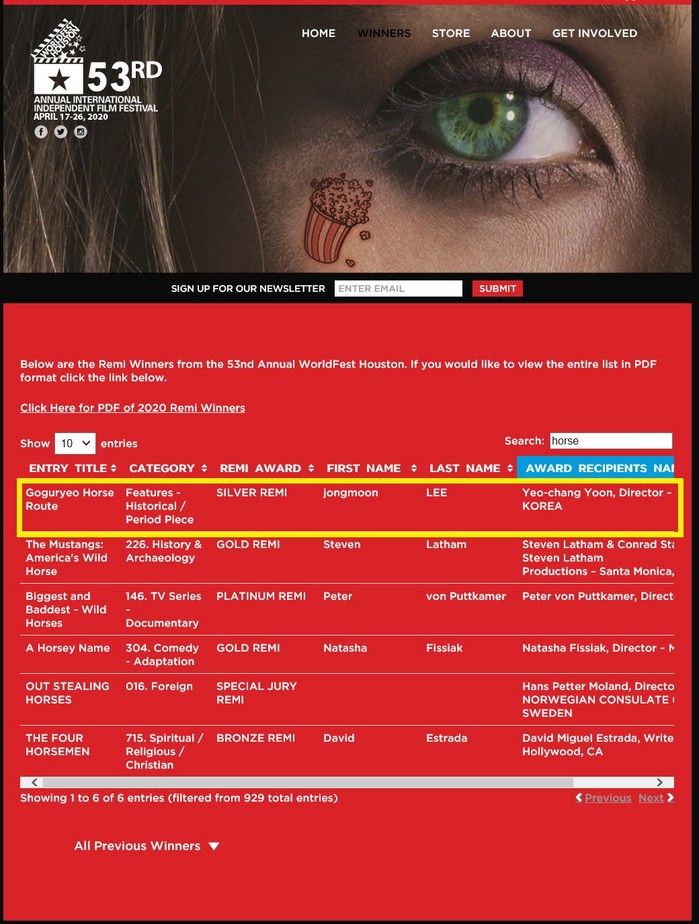 [부자동네타임즈 김인수기자] 고양시 산하 고양지식정보산업진흥원(이하 진흥원) 기업입주시설에 입주해 있는 굿픽처스가 제53회 휴스턴 국제영화제(2020.4.17.~4.26.)에서 ‘고구려 말루트’로 역사/시대물 다큐멘터리 부분 작품상을 수상하였다고 밝혔다.