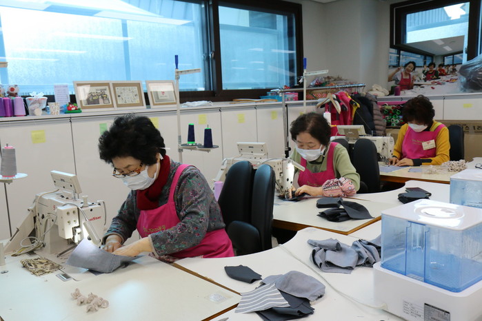 그럼에도 불구하고 ‘할머니와 재봉틀 사업단’ 어르신들은 자신들의 재능을 나누고 지역사회에 보탬이 되고자, 매일 많은 시민들과 접촉해야 하는 관내 노인종합복지관과 종합사회복지관의 종사자들을 위해 정전기방지패드를 넣고 뺄 수 있는 면 마스크 250여개를 제작하였다.