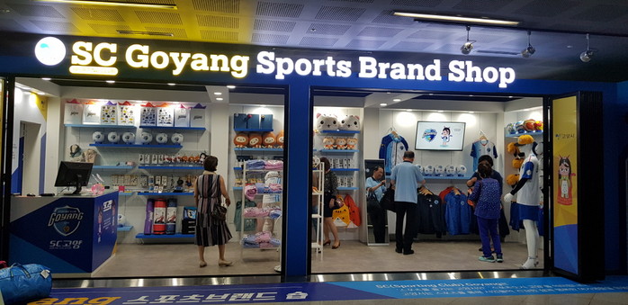 [사진설명] 고양체육관 1층에 위치한 고양시 스포츠브랜드(SC Goyang) 상품관 전경. 인형, 머그컵, 티셔츠 등 13개 업체 55개 상품이 전시, 판매.