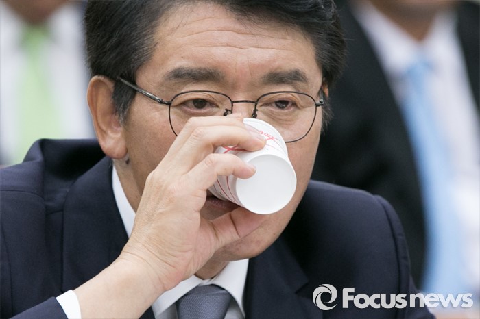 (서울=포커스뉴스) 고대영 한국방송공사(KBS) 사장 후보자가 16일 오전 서울 여의도 국회 미래창조과학방송통신위원회 전체회의실에서 열린 인사청문회에 출석해 물을 마시고 있다.