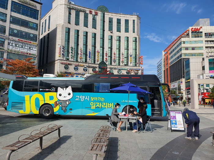 [부자동네타임즈 김인수기자] 고양시의 ‘찾아가는 일자리버스’는 취업정보 소외지역과 구직 기회를 놓치기 쉬운 구직자들을 위해 역 광장, 공원과 구인 기업 등을 직접 찾아가 구직상담, 현장 및 동행 면접, 채용대행 이력서 접수 등 다양한 취업 및 채용 지원 서비스를 제공하는 이동 일자리지원센터다.