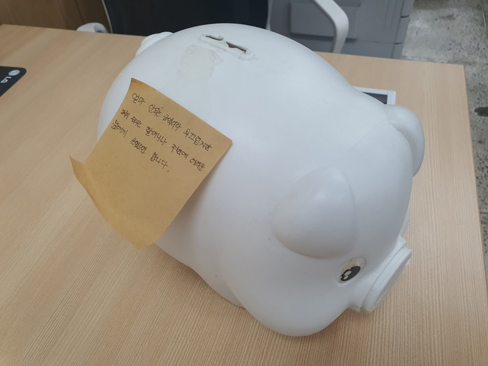 돼지저금통을 발견한 직원은 “뉴스를 통해서나 보던 익명의 기부라는 훈훈한 사연을 직접 접하니 우리 주위에 따뜻한 마음을 가지 분들이 아직 많구나 하는 생각에 제 마음도 따뜻해졌다”고 전했다.