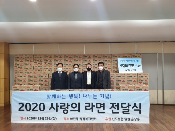 같은 날 화전동(동장 최남영)에는 신도농협 임원으로부터 관내 저소득층을 위한 라면 200개가 도착했다.