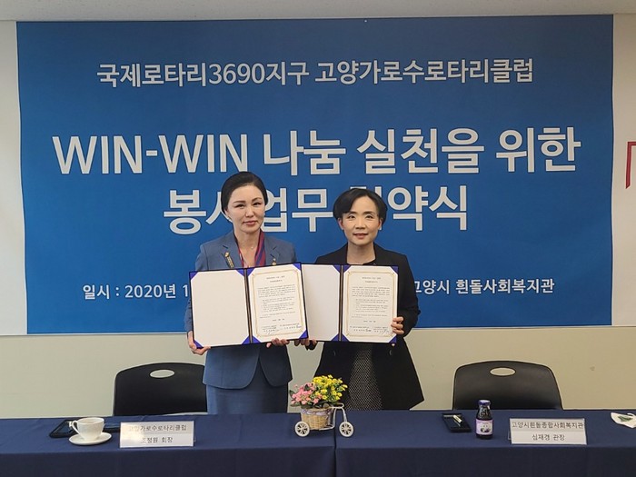 [부자동네타임즈 김인수기자] 고양시는 "고양시흰돌종합사회복지관과 국제로타리 3690지구 고양가로수로타리클럽이 지속적인 나눔 활동을 약속하는 업무협약을 지난 14일 체결했다."고 밝혔다.