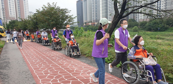 ‘창릉천 휠체어 나들이’는 거동이 불편하거나 혼자 사는 어르신들과 자원봉사자들이 함께 창릉천 나들이를 하면서 기분전환을 하는 행사이다.