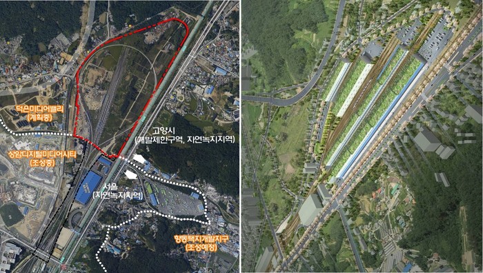 수색차량기지 이전 사업은 한국철도공사에서 2013년 9월 ‘고양 수색역 북부선로 및 물류시설’ 설치를 위해 개발제한구역 관리계획이 승인된 덕은동 97번지 일원 철도공사 소유 토지로, 부지 면적 35만9920㎡에 객차・발전차・기관차 검수를 위한 정비고와 선로를 신설하는 사업이다.