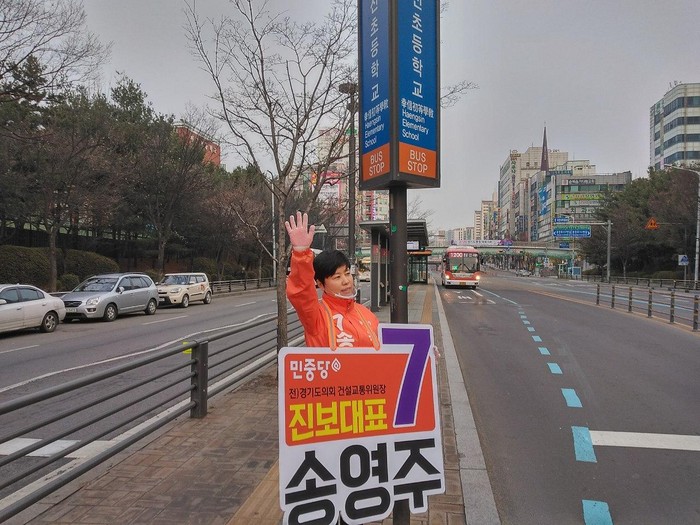 [부자동네타임즈 김인수기자] 민중당 송영주 후보는 선거운동 2일차인 4월 3일 행신초등학교 중앙차로 정류장에서 출근인사를 하며 시민들에게 <편안한 버스 출근길>을 약속했다.
