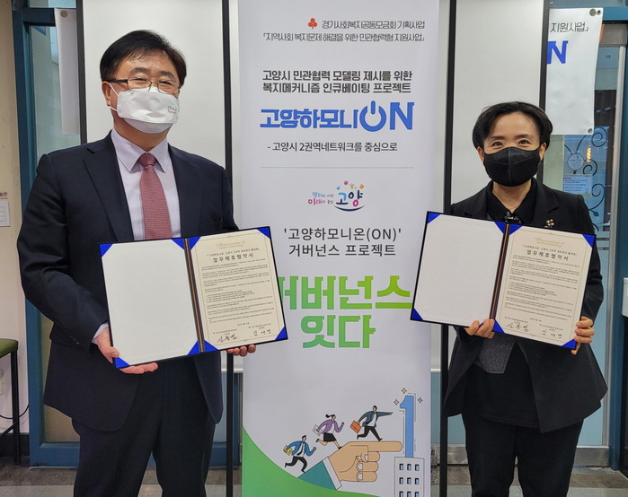 ‘고양하모니온’은 경기북부사회복지공동모금회가 지원하는 ‘고양시 민관협력 모델링 제시를 위한 복지메커니즘 인큐베이팅 프로젝트’로, 고양시 5개 행정동(백석1, 2동, 장항1, 2동, 마두2동)과 고양시흰돌종합사회복지관이 지역사회 문제를 함께 고민하고 해결하기 위해 민·관 네트워크 활성화 사업이다.
