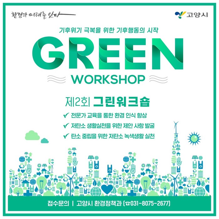 고양시 환경정책과 박노선 과장은 “그린워크숍 관련 주요일정은 시 홈페이지 및 SNS를 통해 공지할 예정이며, 능동적인 시민 참여 행동인 그린워크숍에 많은 참여를 바란다”고 전했다.