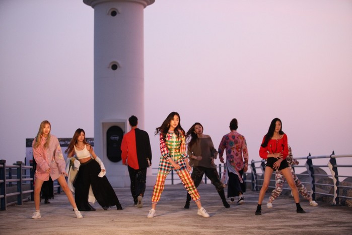 [사진설명] 동해 일출 패션쇼의 무대가 되어줄 삼척 갈남항의 방파제와 등대에서 블라뱅의 의상을 입은 모델이 포즈를 취하고 있다.