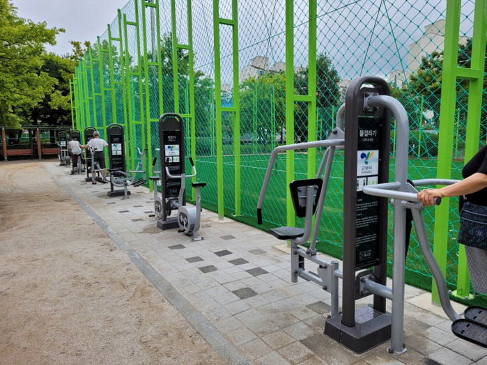 이에 시는 체육시설 주변에 그물망펜스를 설치하고 조명기구를 LED로 교체해 안전사고를 예방했다. 더불어 노후한 운동기구를 교체하고 다양한 종류의 운동기구를 새로 설치했다. 하지만 코로나19 확산세에 따라 인조잔디 구장은 개방되지 않았다.