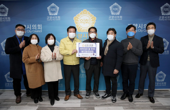 [부자동네타임즈 김인수기자] 고양시의회(의장 이길용)는 1월 24일 민족 최대 명절인 설날을 앞두고 주변의 어려운 이웃과 따뜻한 정을 나누고 마음을 함께하기 위해 고양시사회복지협의회에 후원물품을 전달했다.
