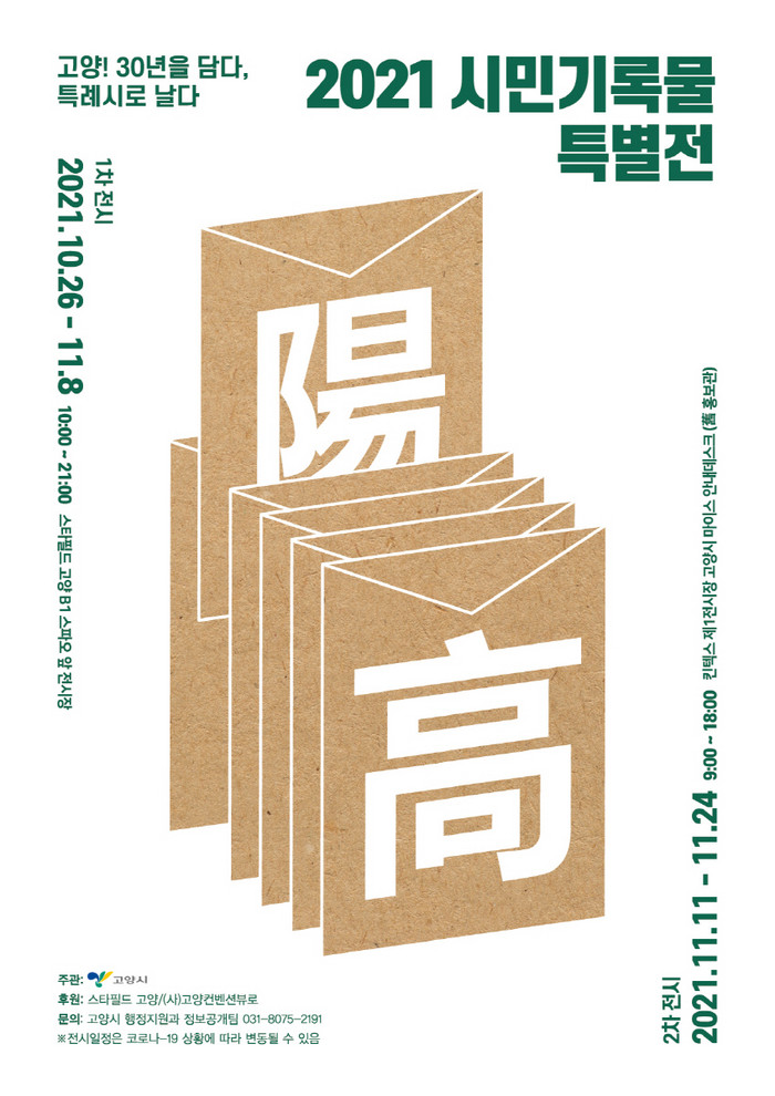 [부자동네타임즈 김인수기자] 고양시가 오는 10월 26일(화)부터 11월 24일(수)까지 2021 시민기록물 특별전을 개최한다.