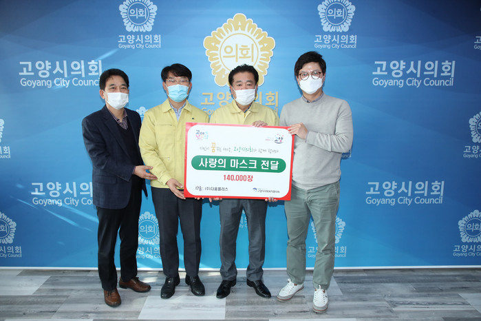 [부자동네타임즈 김인수기자] 고양시의회(의장 이길용)는 "12월 8일 고양시의회 의장실에서 무역 도·소매업체인 다음플러스(대표 박신제)로부터 1,400만원 상당의 마스크 14만장을 기부 받았다."고 밝혔다.