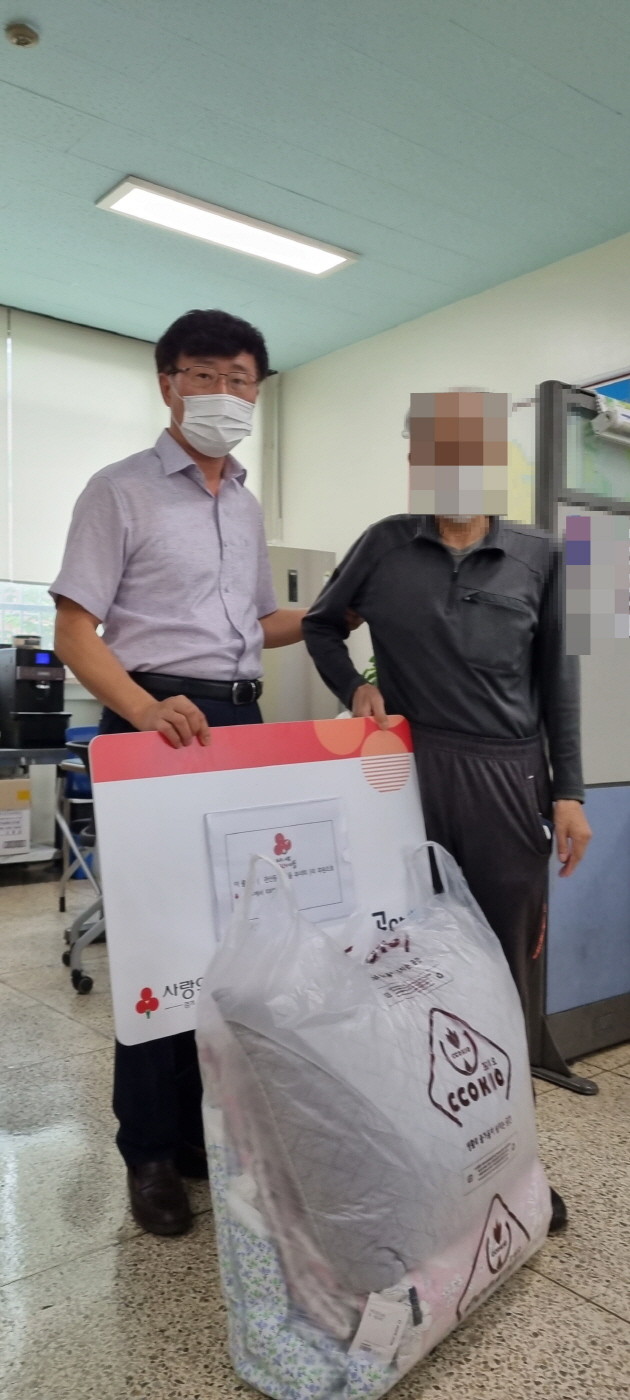 어르신은“수도 누수로 인해 침구류가 다 젖게 돼 덮고 쓸 수 있는 게 없어 관산동행정복지센터에 도움을 요청했더니 바로 쓸 수 있는 물품을 구해주셨다”며 감사의 인사를 전했다.