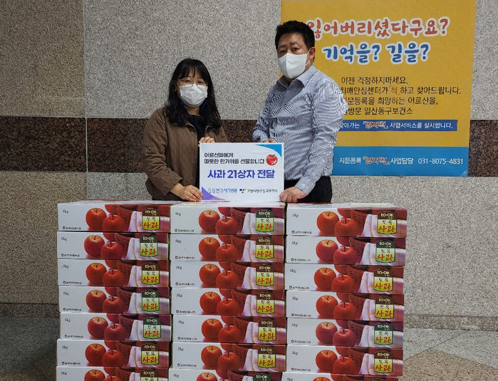 사과박스는 독거노인 및 장애인 등 취약계층 21가구에게 안부 및 명절인사와 함께 전달될 예정이다.