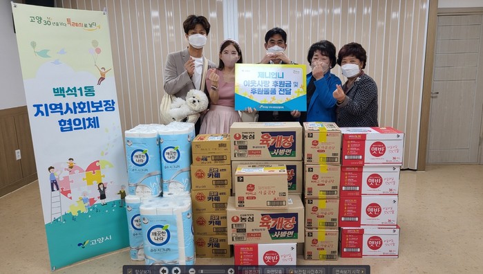 [부자동네타임즈 김인수기자] 고양시 백석1동 행정복지센터(동장 이재복)는 관내 거주 인플루언서 ‘제니언니’ 부부로부터 소외되고 어려운 이웃을 돕기 위한 후원금과 식료품을 기탁받았다고 밝혔다.