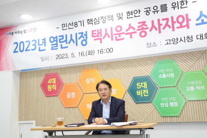 이동환 시장은 16일 시청 대회의실에서 택시조합과 소통간담회를 열고 백석 신청사 문제와 관련한 질문에 “예산을 부담하지 않는 신청사 재검토는 시민과 약속한 공약”이라며 “기부채납 받은 백석 신청사를 활용하면서도 시장실은 원당 현청사에 남아 시민만을 바라보며 고양시의 미래를 위한 현안을 풀어나가겠다”고 피력했다.