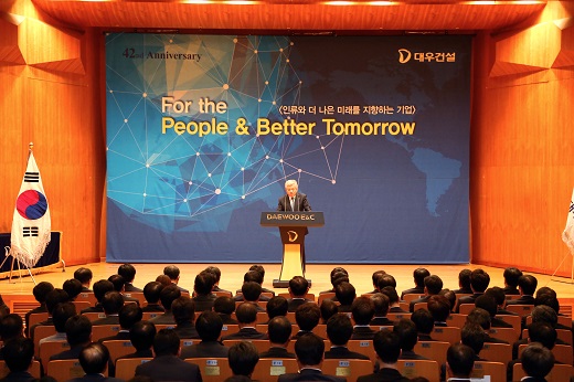 | △ 30일 대우건설 본사 강당에서 창립 42주년 기념식을 진행하고 있다. <사진제공=대우건설> |