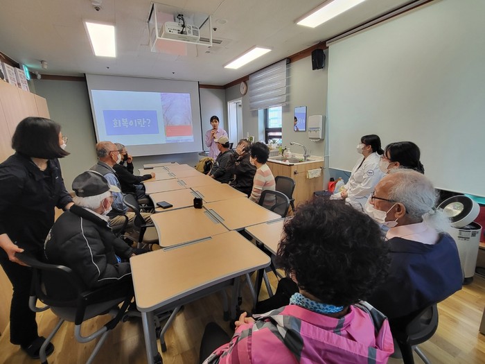이번 프로그램의 대상자는 주 3~4회 이상 술을 마시는 치매환자들이다. 첫 수업은 중독관리통합지원센터 강사의 단주를 위한 강의와 웃음 치료를 진행하여 큰 호응을 얻어냈다.