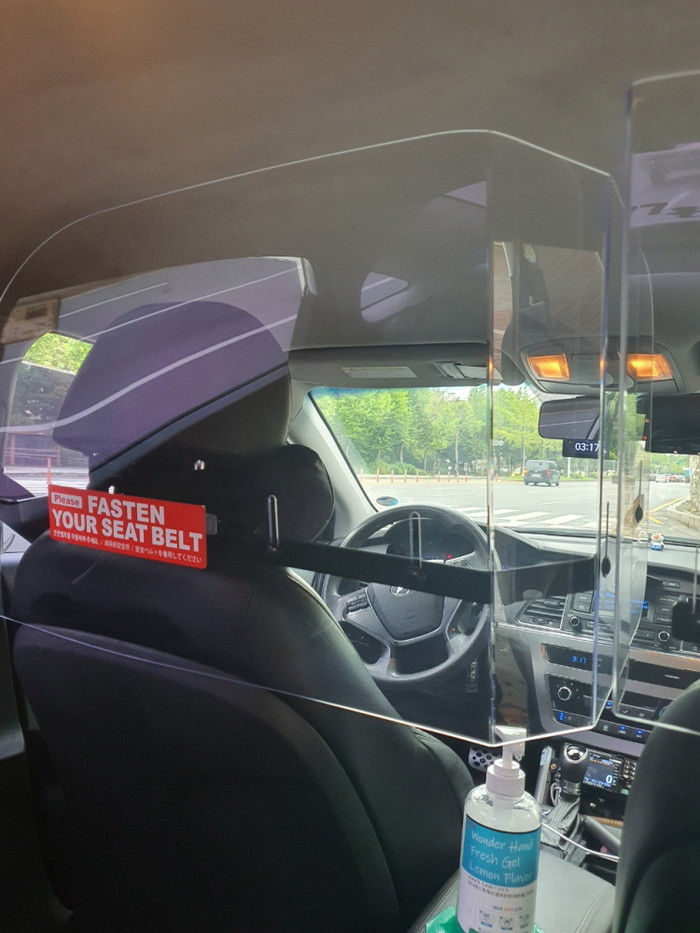 차단막은 L자형으로 만들어져 뒷좌석은 물론 조수석 승객과도 운전자를 분리할 수 있어 비말 차단 효과는 물론 운전자의 안전 보호 효과도 높다.