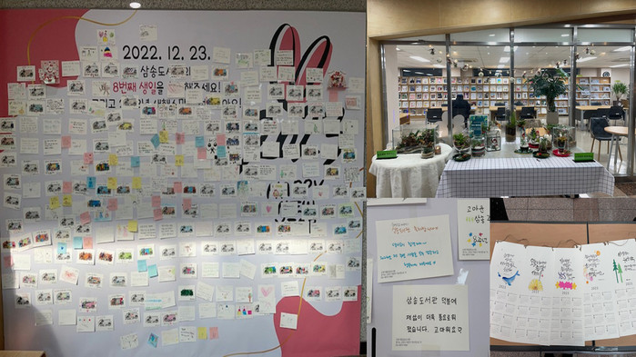 이번 행사는 삼송도서관 개관 8주년을 맞이하여 도서관 이용자들과 함께 기념일을 축하하고 기쁨을 나누기 위해 추진했다. 행사에서는 ▲생일 떡&쿠키 나눔 ▲포토존 운영 ▲도서관에서 만나는 캘리그라피 ▲미니 테라리움 전시 등이 진행되었다.