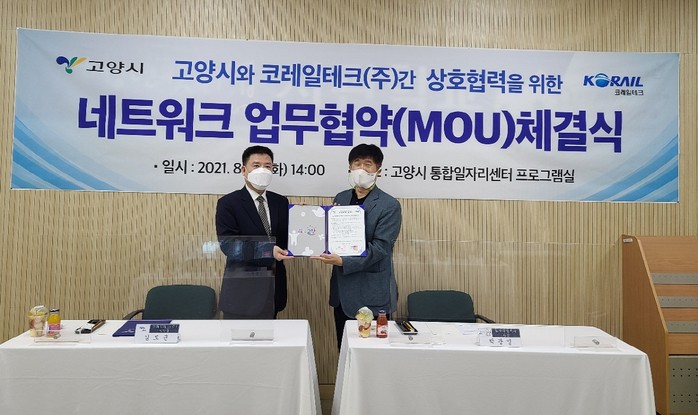 고양시통합일자리센터에서 진행된 협약식은 코레일테크(주)와 시의 채용공고 공유 및 원활한 인력수급을 위해 마련됐다.