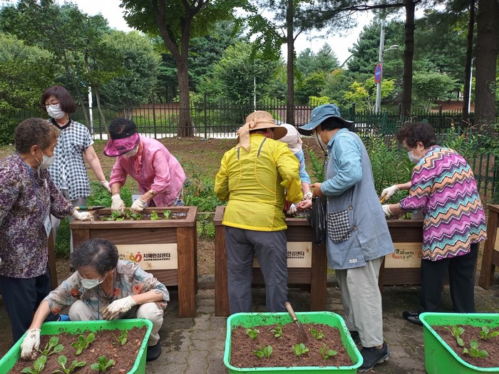 치매안심마을 내 경로당에서 상자텃밭을 이용한 원예프로그램을 진행하며 2022년도는 상자텃밭의 높이를 어르신들의 키 높이에 맞춰 제작해 활동 시 근골격계 질환을 예방할 수 있게 했다.