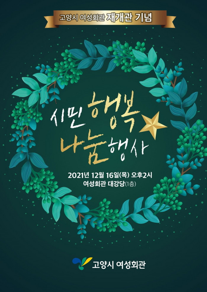 [부자동네타임즈 김인수기자] 고양시 여성회관이 재개관을 기념해 오는 16일 오후 2시 여성회관 대강당에서 ‘시민행복나눔 행사’를 개최한다.