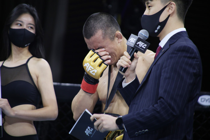 챔피언이 된 소감에 대해 묻자 김상욱은 갑자기 눈물을 흘리며 "아마추어 대회에서도 패하며 내가 재능이 없냐라고 고민했다. 그래도 그때의 패배가 지금의 나를 만든 것 같다"라면서 "포기하지 않아서 챔피언이 될 수 있었다"라고 소회를 밝혔다.