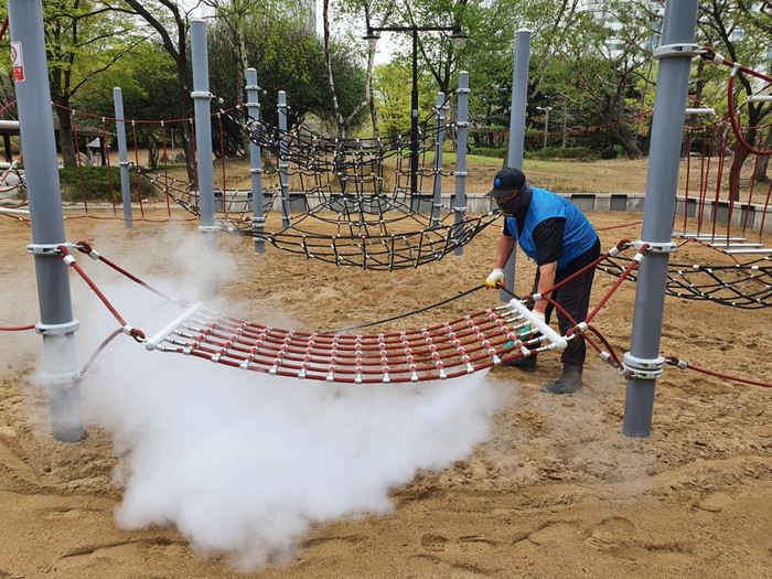 일산서구에서는 따사로운 봄을 맞으며 코로나-19 거리두기 해제 등으로 모래놀이터의 모래 이용이 높아짐에 따라 아이들이 더욱 안전하게 모래놀이터를 이용할 수 있도록 모래 내 섞여 있는 이물질을 모두 제거한 후 스팀장치를 이용해 모래뒤집기, 모래소독, 미끄럼틀 등 놀이시설물 소독 및 세척, 기생충(란)검사를 4월부터 실시하고 있다.