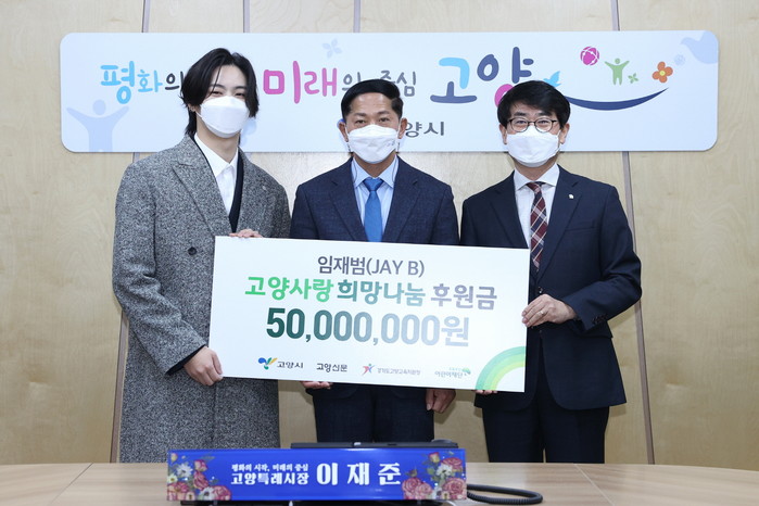 이날 나눔에 참여한 JAY B 임재범은 GOT7(갓세븐)의 멤버이자 하이어 뮤직 소속의 아티스트로 활동 중이며 “고양특례시 출범 이후 처음으로 성금 전달식에 함께 할 수 있어서 더욱 뜻깊다”라고 밝혔다.