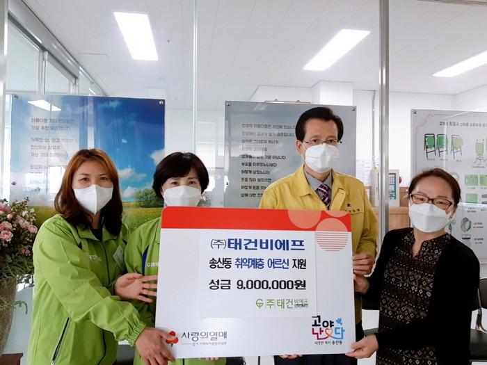 이에 강병의 동장은 “지역사회 내에서 지속적인 선행을 실천해 주시는 ㈜태건비에프에 진심으로 감사드리며 관내 취약계층 어르신들의 안전과 돌봄을 위해 최선을 다하겠다”고 밝혔다.