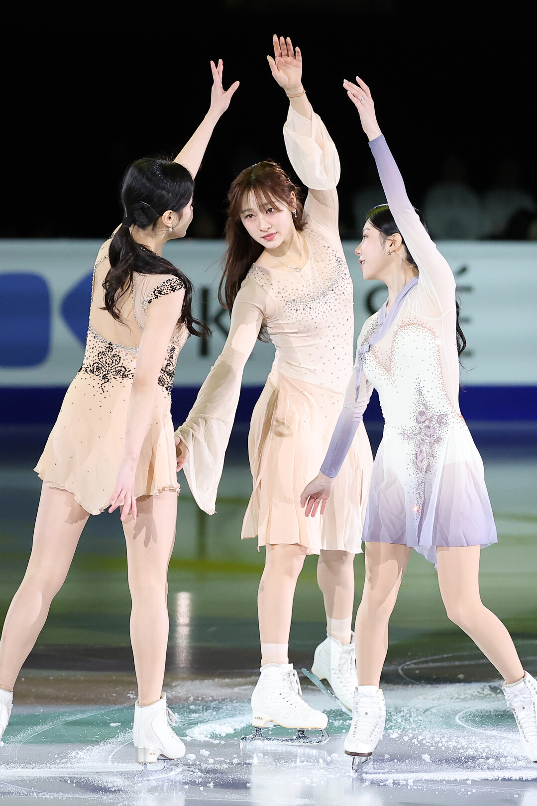 [부자동네타임즈 = 이언금 기자] 위서영, 임은수, 최다빈이 23일 서울 목동아이스링크에서 국제빙상경기연맹(ISU) 4대륙피겨선수권대회 갈라쇼에서 그룹 퍼포먼스 연기를 선보이고 있다. 2025.2.23