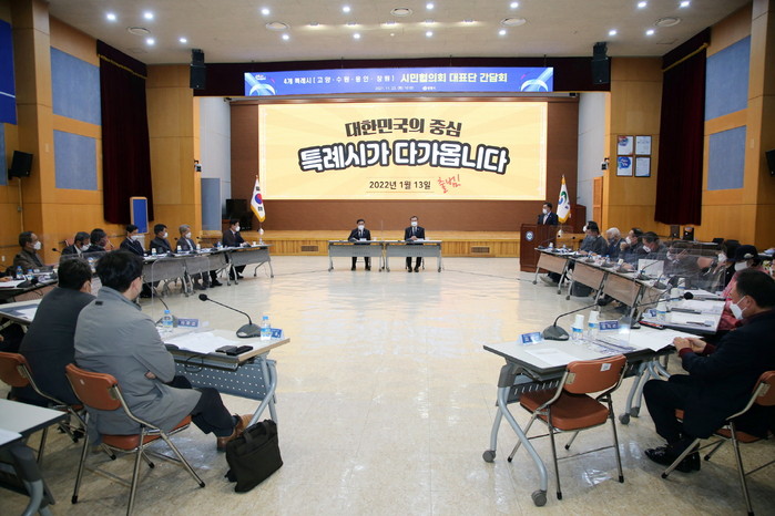 [부자동네타임즈 김인수기자] 고양·수원·용인·창원 4개 특례시 시민협의회 대표단이 특례시 공식 출범을 50여 일 앞두고 지난 23일 창원시청 시민홀에서 두 번째 특례시 시민협의회 대표단 간담회를 열었다.