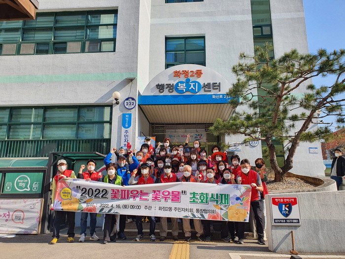이번 행사에는 화정2동 주민자치회와 통장협의회, 동행정복지센터 직원 등 40여 명이 참여하여 페튜니아 720본을 식재하고, 가로 화분을 설치하는 등 주민들이 화사한 봄을 느낄 수 있도록 꽃피우는 거리를 조성했다.