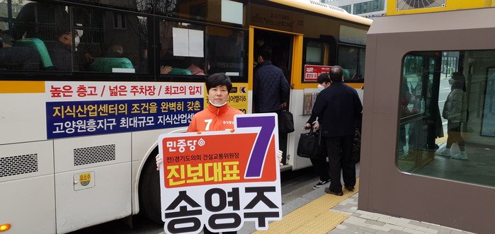 끝으로 송영주 후보는 “임기내에 대화~향동 구간의 중앙차로를 S-BRT로 바꾸겠다. 고양시민들도 지하철 수준의 버스교통 체계를 구축해 편안한 출근길을 만들겠다”고 약속했다.