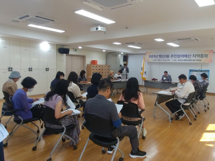 [부자동네타임즈 김인수기자] 고양특례시 행신3동 행정복지센터는 지난 14일 지역회의 위원 및 지역주민들이 참석한 가운데 2023년 행신3동 주민참여예산 지역총회를 개최했다.