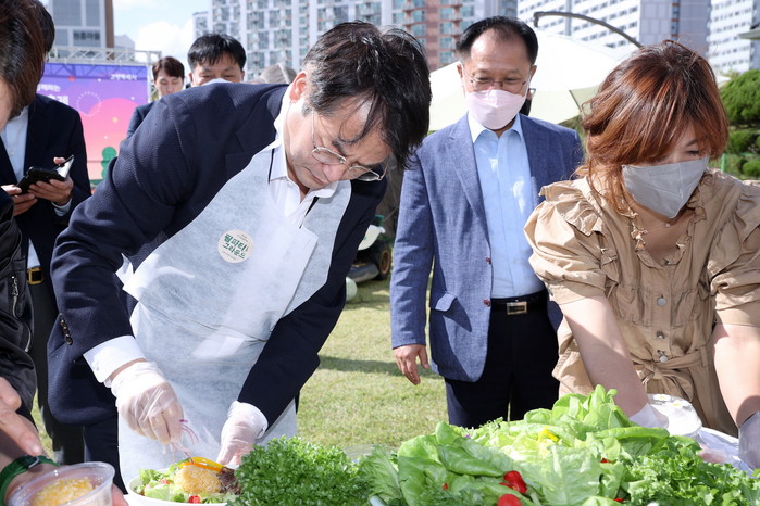 [사진설명] 이동환 고양특례시장이 자이언트 샐러드 만들기에 참여하고 있다.