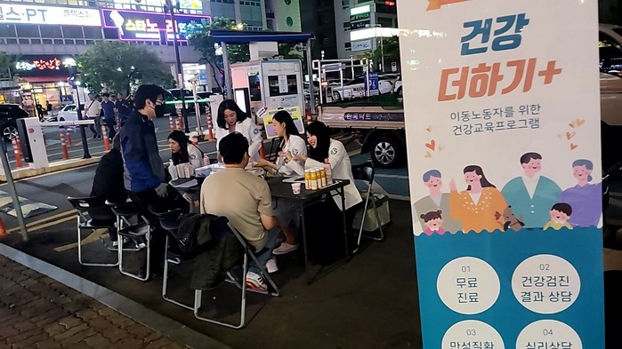 이날 대리기사 및 배달종사자들에게 발병 위험이 높은 심혈관계, 내분비계, 호흡기계, 스트레스 등에 대한 진단 검사가 진행됐으며, 직업성 근골격계 질환 예방을 위한 전문의 진료 및 다양한 서비스도 제공됐다.