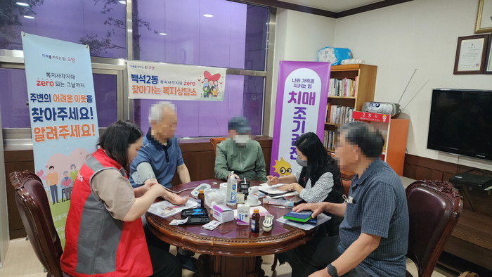 이종찬 백석2동장은 “치매는 조기 발견이 중요한데 고령과 거동불편으로 보건소를 방문하지 못하는 분들을 위해 방문검사를 진행하여 만족도가 높은 것 같다. 추후에도 접근성이 좋은 곳을 선정하여 진행하겠다” 고 말했다.