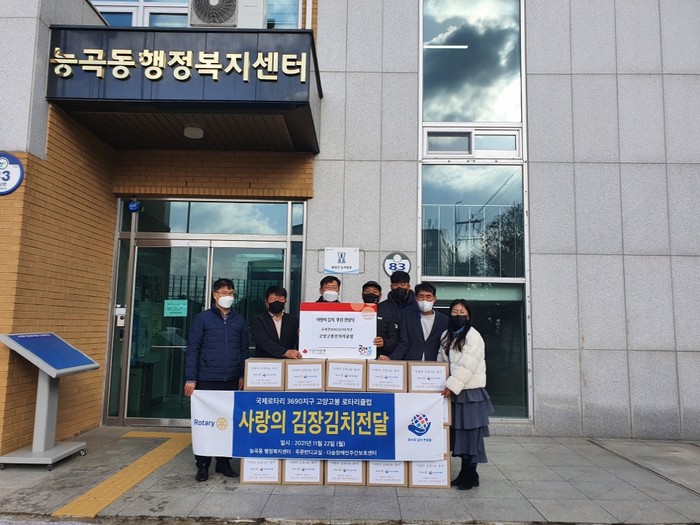 이번 전달식에서는 고양고봉 로타리클럽 회원들이 독거노인 등 취약계층을 위해 직접 담근 김장김치 20박스를 능곡동에 기탁했으며, 자리에는 능곡동지역사회보장협의체 위원 등이 참석했다.