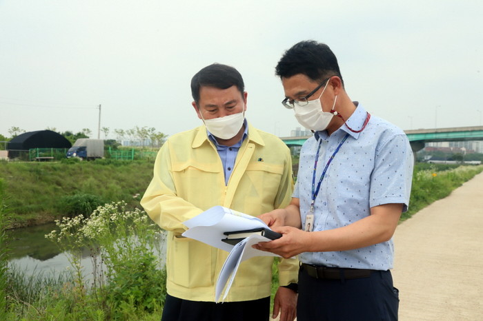 취임 첫날 공식 일정으로 장마철 수해 대비 관내 대장 펌프장 및 대내로 펌프장 등을 현장 방문하며 취임식을 갈음한 명 구청장은 “이번 주부터 본격적으로 장마가 시작되는 만큼 비 피해가 최소화되도록 철저하게 대비해 줄 것”을 당부하며 배수시설과 장마 대비 상황을 점검하고 관계자를 격려했다.
