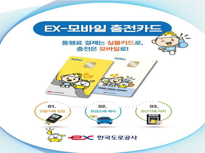 EX-모바일 충전카드는 모바일 앱(고속도로 통행료)을 통해 충전하는 하이패스 전용 선불카드다.